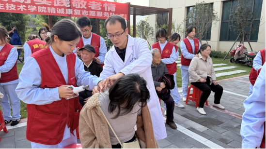 在爱心义诊区,卫生技术学院精诚康复志愿服务队的师生们早早布置好服务点位,耐心细致地为社区老年居民提供专业健康服务。他们为老人量血压、测血糖,还结合康复专业特长,开展健康咨询、推拿、针灸、艾灸、拔罐等服务,并为社区居民普及秋季养生和疾病预防知识。师生们热情周到、专业细致的服务赢得了老人们一致好评,现场暖意融融,欢声笑语。