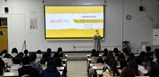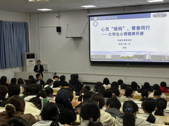 讲座以“心灵‘绿码’,青春同行”为主题,结合权威数据解析大学生心理发展特点,针对自我认知、学业压力、人际关系等常见问题给出实操策略。彭晶讲解抑郁、焦虑等心理障碍的识别与自我管理方法,分享自评量表使用方式,并公布援助热线及校内咨询渠道,引导学生主动求助。讲座内容实用、案例鲜活,有效提升学生心理健康意识与自我调适能力。